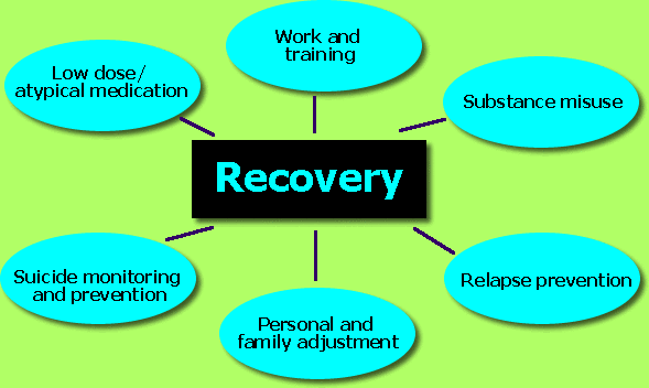 Evidence based practice is provided to clients including a low dose neuroleptic medication regime, cognitive therapy for hallucinations and delusions and specific psychosocial interventions for personal and social recovery. These interventions place great emphasis on the establishment of appropriately valued roles and goals and promoting self-management techniques.